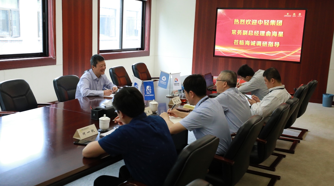On May 30, Yu Haixing, Executive Deputy General Manager, Deputy Party Secretary and Board Member of Sinolight Corporation came to our company for a special survey and gave audience to the reporting on key topics such as strategic planning. Xu Datong, Party Secretary and Chairman of China Haisum Engineering Co., Ltd., Li Yimin, Secretary of Commission for Discipline Inspection, Zhou Yuan, General Manager of the Headquarters and other leaders received President Yu and his party.