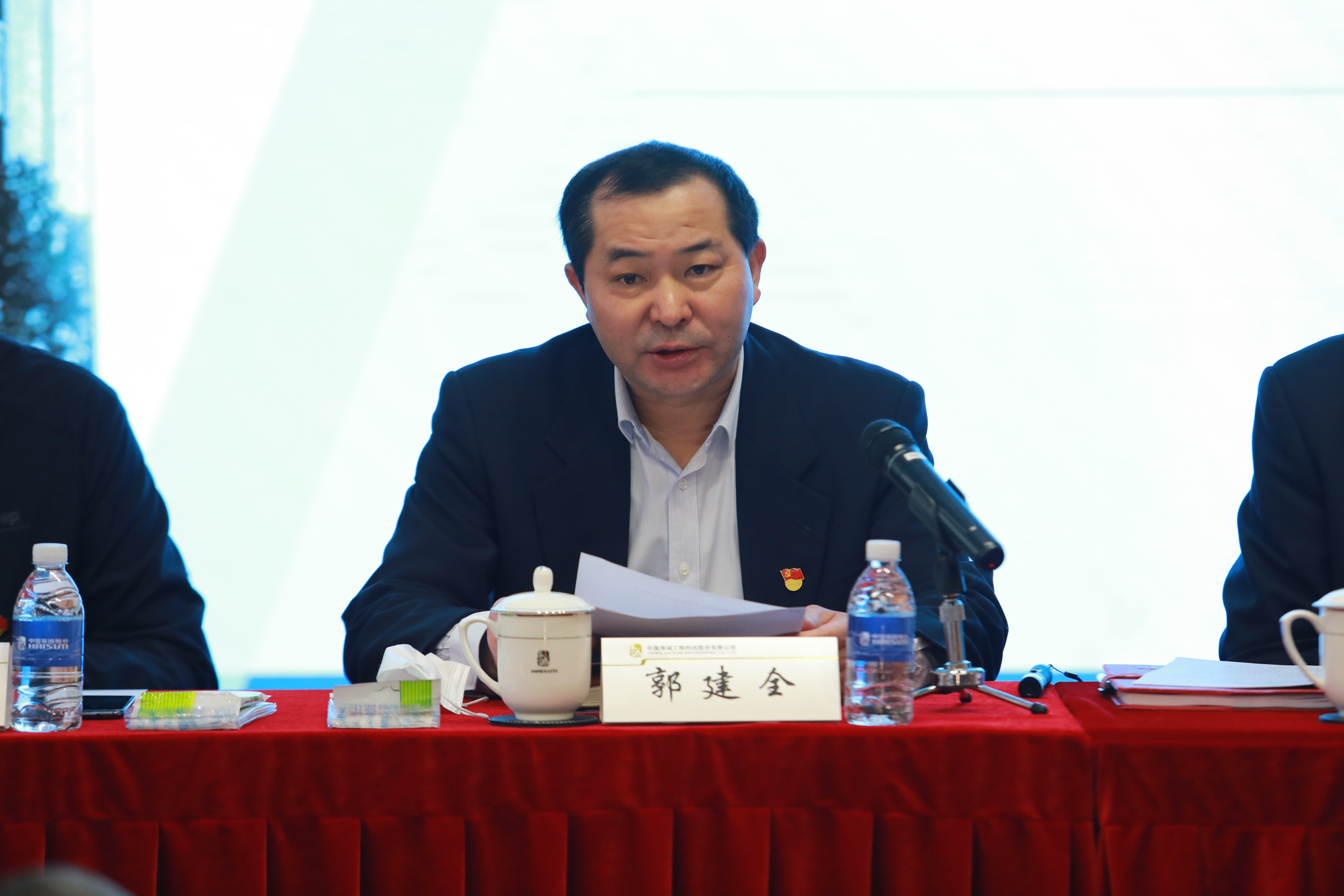 At the end of the meeting,Guo made an important speech. He put forward three specific requirements based on the Group Company’s work expectations for Haisum:Firstly,build confidence,take the initiative and strive to achieve business goals.It is necessary to improve the political positioning,strengthen the work style and earnestly undertake the responsibility and mission.Take a strategic initiative to turn crises into opportunities to have both epidemic prevention and contract performance in hand to ensure that business goals can be achieved on schedule;secondly, we must face up to shortcomings, pursue excellence and courageously respond to risks and challenges.We have to continue to align to the industrial bench-marking companies and take more pragmatic and powerful measures with a higher position and a farther perspective to promote the enterprise in its market scale expansion,project management and development benefits and improve lean management level as well as creativity in the overall value chain;thirdly,we must break through the bottleneck,be bold in innovation and continue to generate development momentum.It is necessary for us to improve the level of core technology,take the advantage of information technology and AI,and increase development efforts in intelligent design,intelligent operation and maintenance and continuously cultivate new development momentum.We need to advance capital operation and make substantive progress in deepening the reform of mixed ownership, and facilitate the transformation to an “engineering service provider + operation investor”. We need to truly realize the leap-forward development from “design institutes compromise with engineer business” to “engineering companies compromise with the design business” in accordance with the requirements of systematic reforms and overall reconstruction and implementation of specialized platform management.
