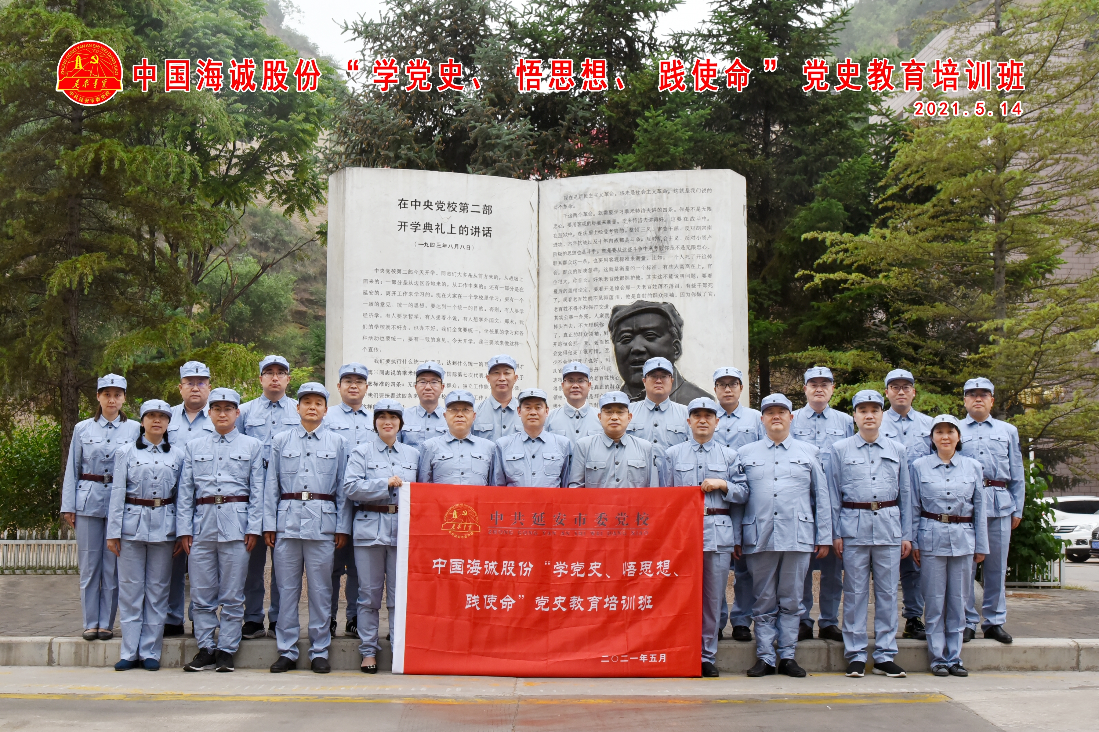 At the training class opening ceremony, He Hailun, the head of the Yan'an Spiritual Research Center of the Party School of Yan'an Municipal Party Committee and the former Vice President of Yan'an Cadre Training College, gave a welcome speech. Zhao Guoang, the Secretary of the CPC  Committee Secretary and Chairman of Haisum made a mobilization speech for the opening of the class. Zhao underlined that Yan'an was the cradle of the Chinese revolution and the spiritual home of Communist Party members. We came to Yan'an, a sacred place of revolution, to carry out study and education to thoroughly study and comprehend Xi Jinping’s thoughts on socialism with Chinese characteristics in the new era, not forget our original aspirations and keep our mission in mind, inherit the red gene, carry forward the Party’s fine traditions, and further enhance the "four consciousnesses", strengthen the "four self-confidence", achieve "two safeguards" and continuously improve our capacities in political judgment, political understanding and political execution.