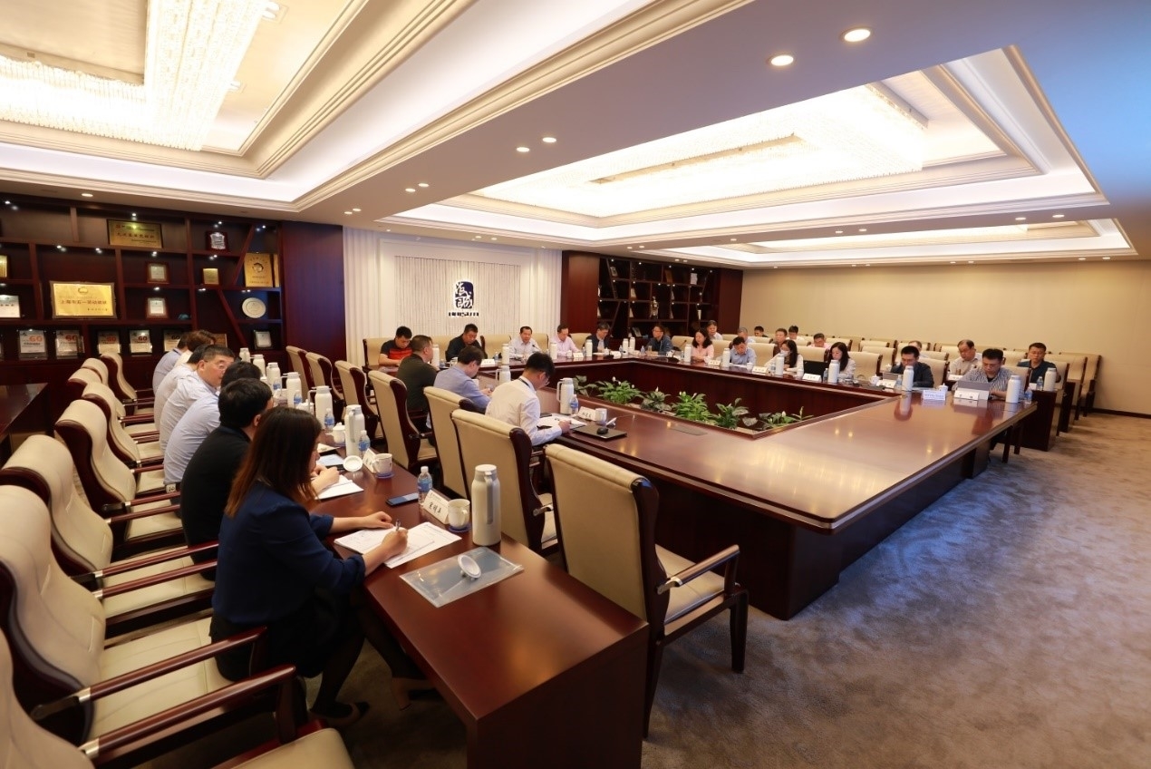 On May 11, SinoLight Corporation’s Deputy Secretary of the Party Committee and General Manager Guo Jianquan, Deputy General Managers Ren Jianping and Cai Muyi, Deputy Chief Engineer and Safety Director Zhang Jianxin, and General Manager Assistant and Director of the Science and Technology Management and Industry Promotion Center Xiao Dan, as well as other leaders visited Haisum and carried out special studies on technological development strategy, industrial promotion and information construction work. Haisum’s CPC Committee Secretary and Chairman Zhao Guoang, President Chen Rongrong, Vice Presidents Zhou Yuan, Jinshan, Du Daoyou and other leading members, heads of relevant departments of Haisum headquarters, and leaders in charge of technology and information of the headquarters and various head offices participated in the survey work meeting. The meeting was chaired by Xiao Dan.