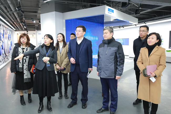 Zhao Guoang first extended a warm welcome to the district leaders and his delegation and led district leaders to visit the "Brand Exhibition Hall of China Haisum" which was about to be completed. District leaders learned about the development history, main business, advantages of engineering services in pulping and papermaking, food fermentation, tobacco, civil public construction, energy conservation and environmental protection, new energy and new materials and other industries of China Haisum with great interest, as well as the Company's performance and planning in intelligent manufacturing and digital development.