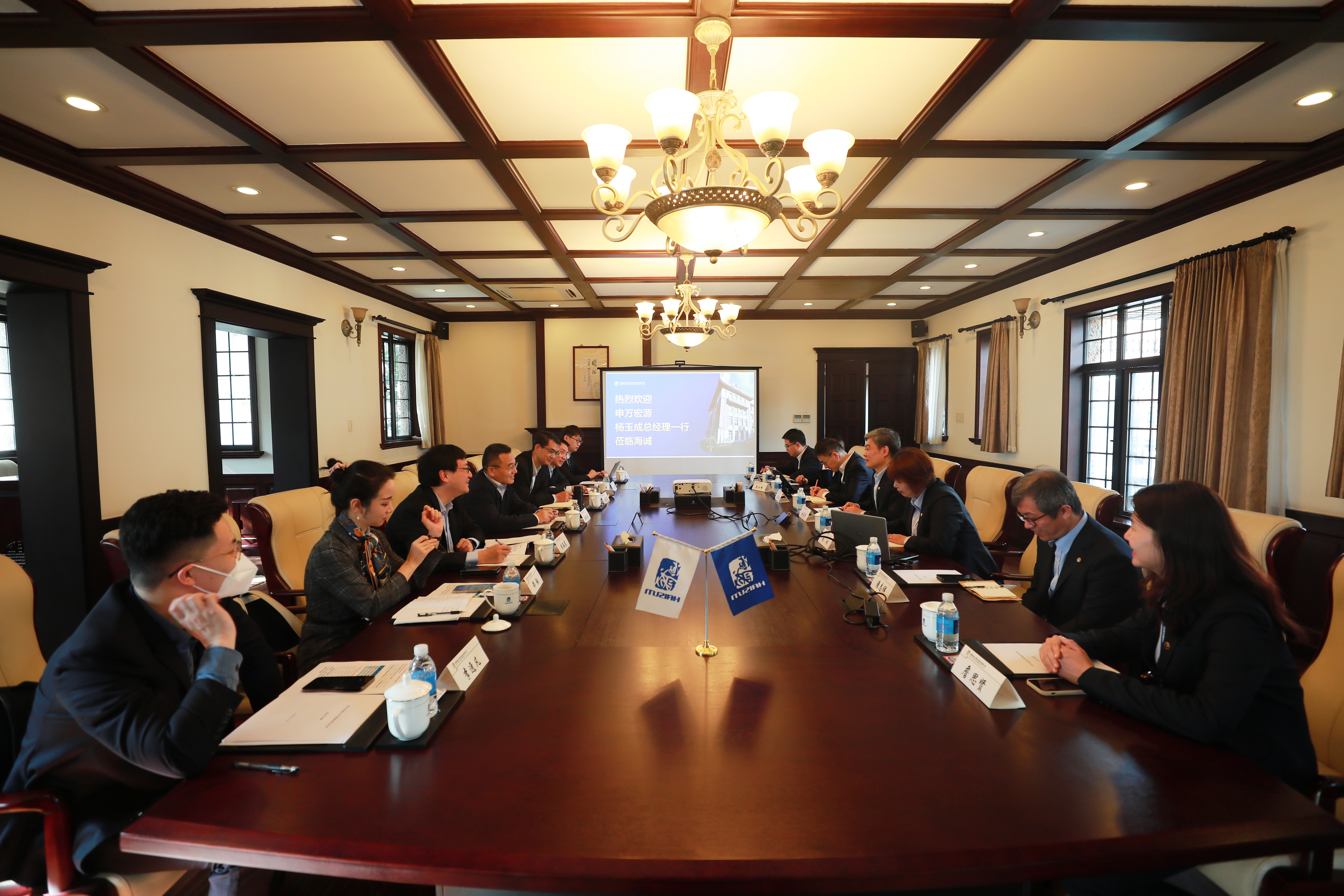 On the morning of November 23, Zhao Guoang, Chief Economist of China Light Industry Group Co.,Ltd., Secretary of CPC Committee and Chairman of China Haisum, warmly received the visiting group led by Yang Yucheng, Deputy Secretary of CPC Committee and General Manager of Shenwan Hongyuan Securities. The two sides conducted in-depth discussions around the reform, development strategies, human resources construction, and Party building of state-owned enterprises, and exchanged cooperation intentions.