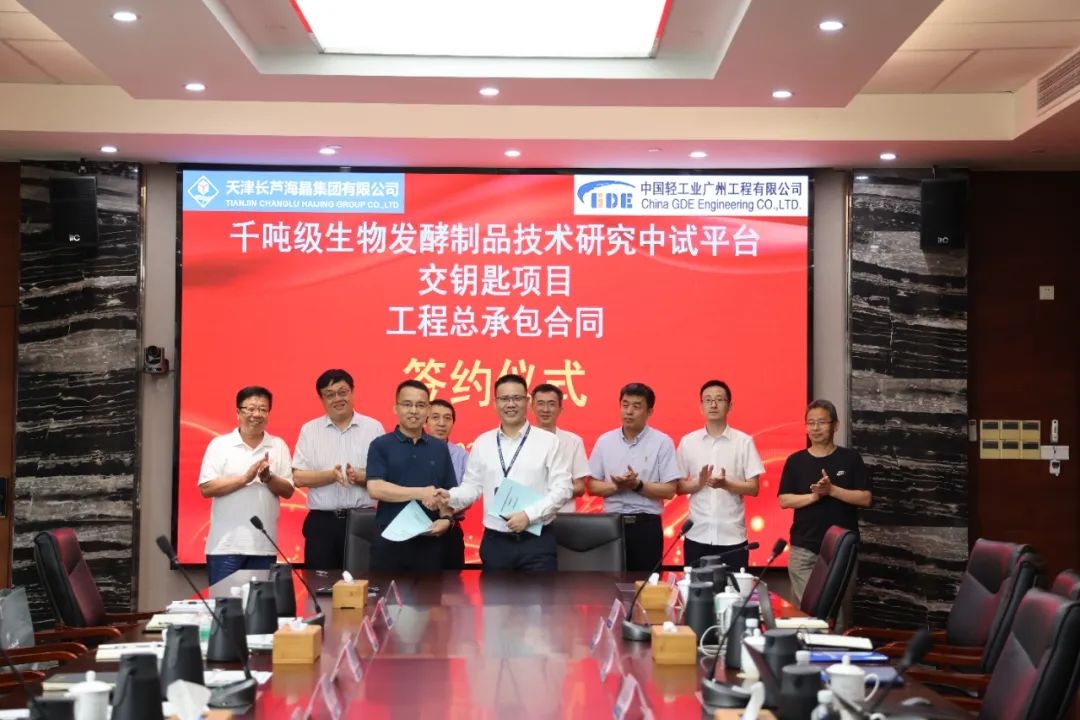 日前,天津渤海化工集團副總經(jīng)理張寶春一行蒞臨中國海誠所屬中國輕工業(yè)廣州工程有限公司(以下簡稱廣州公司)考察并出席“千噸級生物發(fā)酵制品技術(shù)研究中試平臺交鑰匙項目”工程總承包合同的簽約儀式,廣州公司黨委書記、董事長、總經(jīng)理羅軍代表公司與天津渤海化工集團簽署總承包合同。