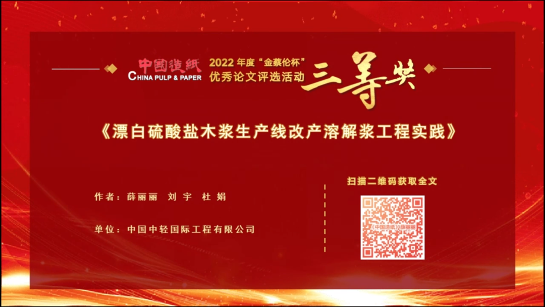 榮獲《中國(guó)造紙》2022年度“金蔡倫杯”優(yōu)秀論文三等獎(jiǎng)