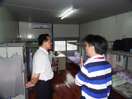 公司領(lǐng)導(dǎo)們每到一處,都查看了施工進展和現(xiàn)場管理的情況,與現(xiàn)場員工親切座談,詢問了解大家的工作、生活情況,對他們所做的工作和良好的精神狀態(tài)予以了充分肯定,并送上了毛巾、防蚊液、洗浴露等防暑降溫用品,在炎炎夏日里給辛苦工作的員工送上一份清涼,也把公司對一線員工的關(guān)心和愛護送到他們的心坎上。同時領(lǐng)導(dǎo)們鼓勵大家要繼續(xù)發(fā)揚不畏艱苦、連續(xù)作戰(zhàn)的精神,把工作做好,反復(fù)強調(diào)要重視防范風(fēng)險、注意生產(chǎn)安全。