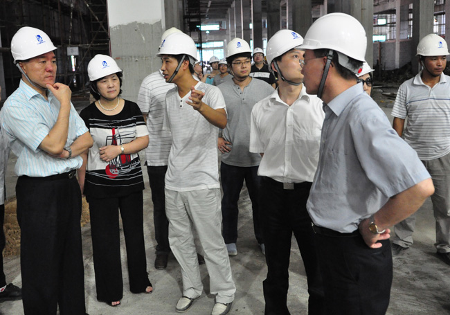 一到現(xiàn)場(chǎng),展現(xiàn)在眼前的宏偉壯觀的景象令每一個(gè)人震撼:整個(gè)廠房長800米寬200米,近800個(gè)工人們頂著烈日熱火朝天地忙碌著。嚴(yán)總一行首先察看了在建中的鮮奶車間工地,仔細(xì)詢問了人員工作情況、現(xiàn)場(chǎng)安全管理情況和施工進(jìn)度。該項(xiàng)目作為上海市重點(diǎn)項(xiàng)目和國家級(jí)重大項(xiàng)目,體量大、工期緊,業(yè)主要求也非常嚴(yán)格,項(xiàng)目團(tuán)隊(duì)?wèi){借高度的責(zé)任感,運(yùn)用自己的智慧與經(jīng)驗(yàn),克服各種困難,使項(xiàng)目有序地推進(jìn)。在現(xiàn)場(chǎng),大家對(duì)管理的井然、梁柱的挺括不時(shí)發(fā)出嘖嘖稱贊。