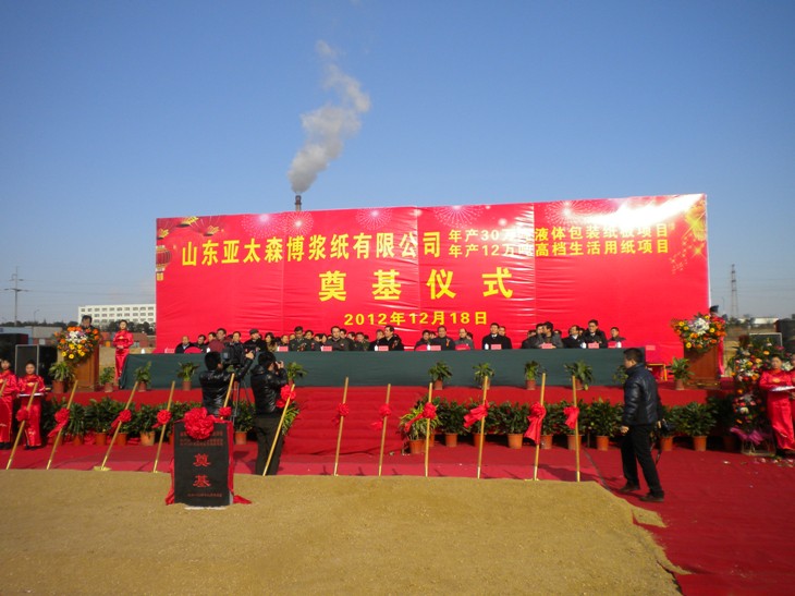由海誠本部負(fù)責(zé)工程設(shè)計(jì)、中輕建設(shè)負(fù)責(zé)土建施工、輕鑫監(jiān)理負(fù)責(zé)監(jiān)理的山東亞太森博漿紙有限公司三期項(xiàng)目年產(chǎn)30萬噸液體包裝紙板項(xiàng)目暨年產(chǎn)12萬噸高檔生活用紙項(xiàng)目于2012年12月18日正式開工建設(shè)。海誠股份副總裁戚永宜作為特邀嘉賓出席了開工儀式。