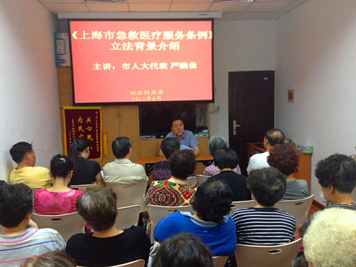 6月25日下午,公司董事長(zhǎng)、上海市人大代表嚴(yán)曉儉來(lái)到天平街道的桃源村居委,開展聯(lián)系社區(qū)活動(dòng),就正在征求意見的《<上海市急救醫(yī)療服務(wù)條例>草案》(以下簡(jiǎn)稱“條例”)進(jìn)行征詢座談。