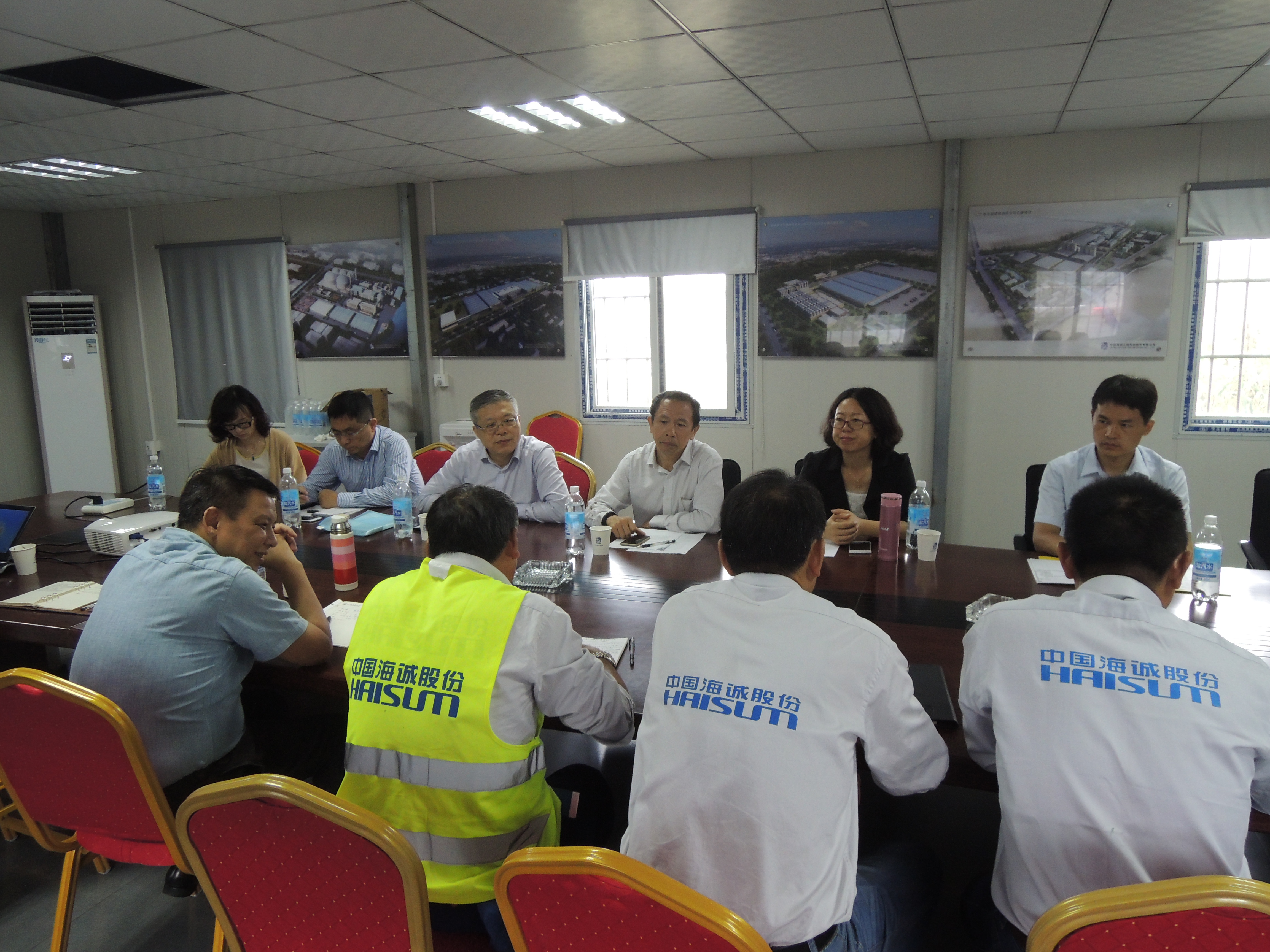 在項(xiàng)目現(xiàn)場,任總一行首先聽取了大豐英茂糖業(yè)項(xiàng)目工程概況、現(xiàn)場進(jìn)度、安全管理、文明施工、危險(xiǎn)源等工作情況匯報(bào),對(duì)項(xiàng)目取得的成績進(jìn)行了充分肯定。任總表示,集團(tuán)公司對(duì)安全生產(chǎn)工作一直都高度重視,本次受集團(tuán)公司董事長陳鄂生、總經(jīng)理俞海星的委托對(duì)江蘇大豐英茂糖業(yè)項(xiàng)目進(jìn)行安全檢查,再次表明了集團(tuán)公司對(duì)安全生產(chǎn)工作的態(tài)度。海誠股份建筑施工板塊安全生產(chǎn)工作點(diǎn)多、面廣、風(fēng)險(xiǎn)高、管理難度大;安全要天天講,月月講,要從上到下,層層傳遞到一線作業(yè)員工;海誠股份職能部門與業(yè)務(wù)部門要相互理解、相互支持,共同推進(jìn)大豐英茂糖業(yè)項(xiàng)目及其他施工項(xiàng)目的安全順利完工。任總還傳達(dá)了國資委郝鵬同志關(guān)于中央企業(yè)強(qiáng)化落實(shí)安全生產(chǎn)工作的重要講話精神,要求海誠股份全力做好國慶節(jié)、中秋節(jié)及十九大召開期間安全生產(chǎn)各項(xiàng)工作。