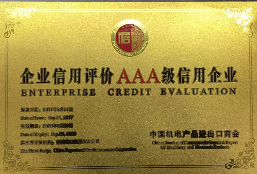 近日,中國機(jī)電產(chǎn)品進(jìn)出口商會(huì)公布了2017年機(jī)電行業(yè)信用評價(jià)企業(yè)名錄,我司再次榮獲“成套工程領(lǐng)域AAA級(jí)(最高級(jí)別)信用企業(yè)稱號(hào)”。