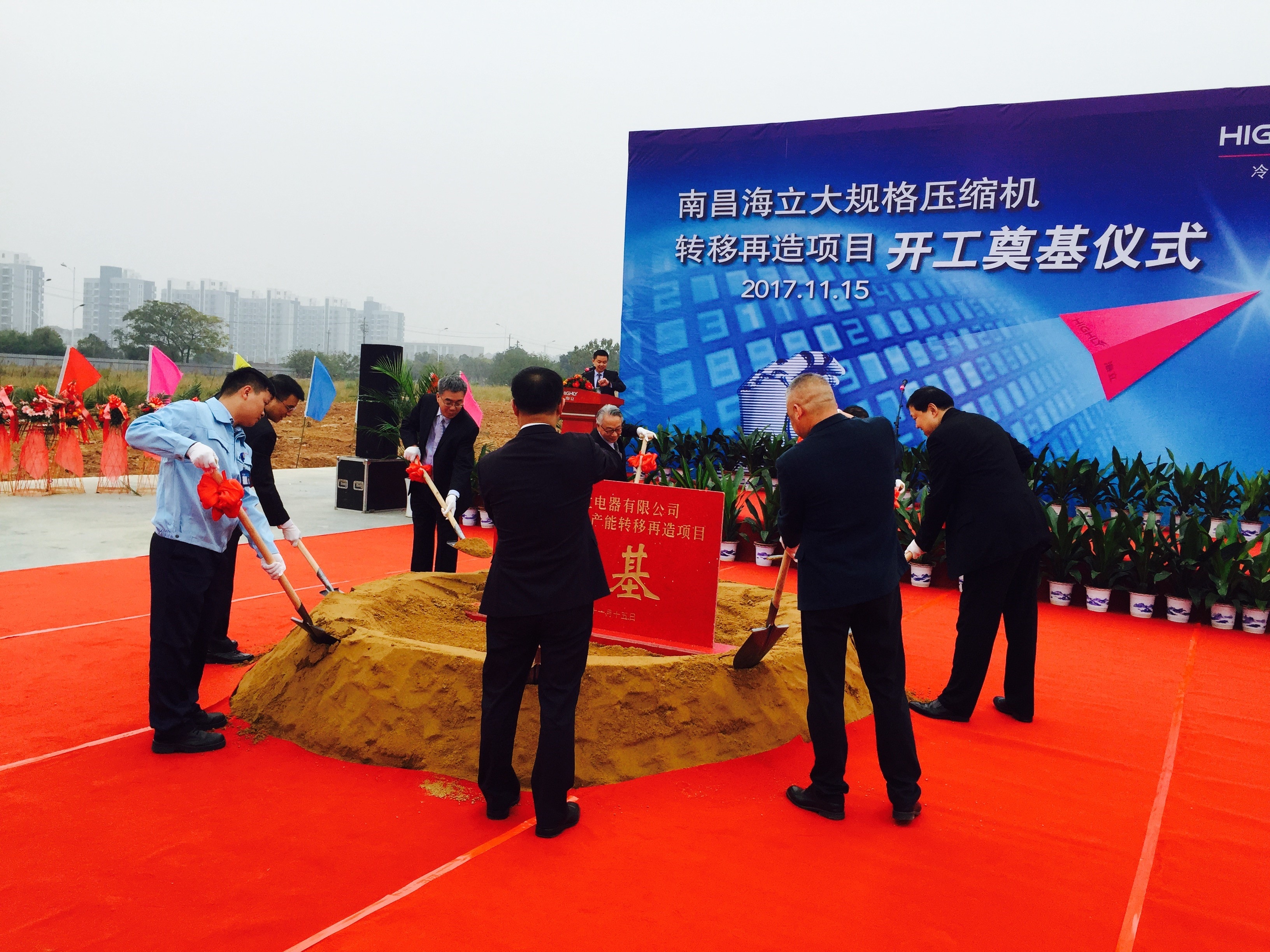 2017年11月15日,由公司總承包的“南昌海立電器有限公司大規(guī)格壓縮機(jī)產(chǎn)能轉(zhuǎn)移再造項(xiàng)目”正式奠基開工。海立集團(tuán)董事長(zhǎng)沈建芳出席了奠基儀式,公司副總裁戚永宜應(yīng)邀參加。