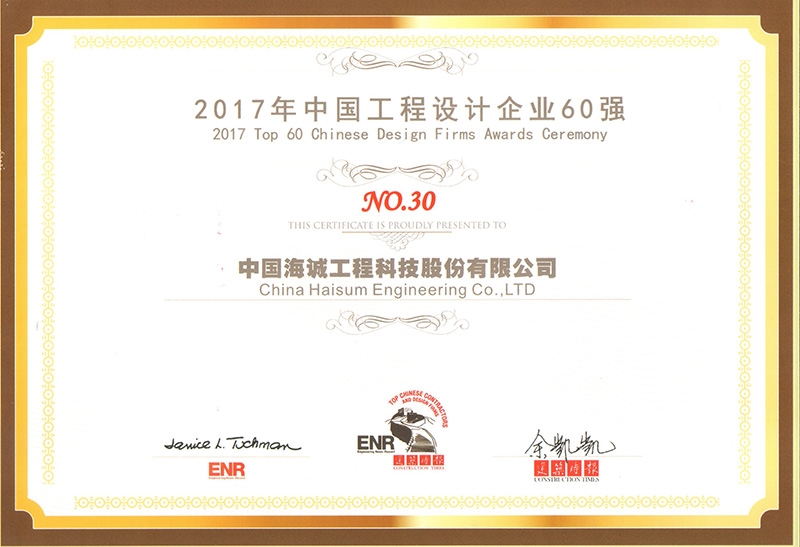 海誠(chéng)股份以設(shè)計(jì)營(yíng)業(yè)收入137892.22萬(wàn)元位列中國(guó)工程設(shè)計(jì)企業(yè)60強(qiáng)第30位,排名較去年上升了14位。這是自2004年舉辦該活動(dòng)以來(lái),公司連續(xù)第十四次獲此殊榮。