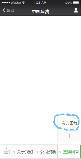 2、點擊自定義菜單“直播回看”—“慶典回放”按鈕進入直播頁面。