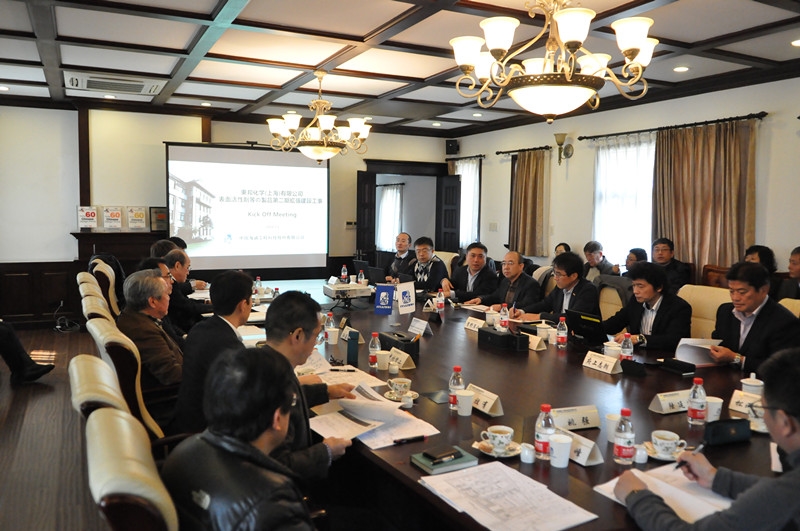 3月2日,公司承接的“東邦化學表面活性劑二期擴建項目”開工會在公司本部舉行。海誠股份董事長徐大同會見了東邦化學(上海)有限公司董事長江藤俊幸、總經(jīng)理中村賢二,以及陪同到訪的華麗和東麗兩家工程公司的代表。陪同會見的還有海誠股份領導邊君義和五部總經(jīng)理顧飛鷗。五部副總經(jīng)理鄭文率項目團隊主要成員參加會議并與業(yè)主方作項目溝通交流。