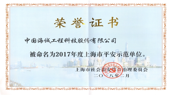 日前,上海市綜治委下發(fā)通知,對本市在平安創(chuàng)建活動中表現(xiàn)突出的單位進(jìn)行表彰,我公司獲評“2017年度上海市平安示范單位”。