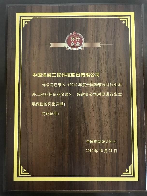 日前,中國(guó)勘察設(shè)計(jì)協(xié)會(huì)公布了“海外工程標(biāo)桿企業(yè)”的評(píng)選結(jié)果,中國(guó)海誠(chéng)股份榮獲中國(guó)勘察設(shè)計(jì)行業(yè)“海外工程標(biāo)桿企業(yè)”榮譽(yù)稱號(hào),榮譽(yù)被收錄在《2019年度全國(guó)勘察設(shè)計(jì)行業(yè)海外工程標(biāo)桿企業(yè)名錄》。