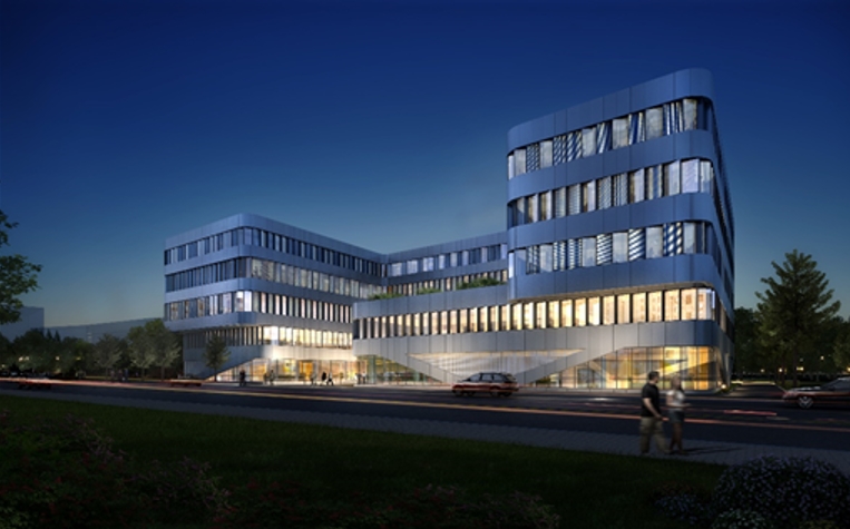 項目采用穿插、錯落等手法構(gòu)成兩個相互咬合的“L”形建筑體量,一方面減少了實驗人員的運輸和檢測流線,另一方面可滿足各個空間的采光通風,降低能耗。建筑以綠色建筑二星的標準進行建造,在節(jié)約能源和成本的同時也達到了國家要求的可持續(xù)性建筑的需要。