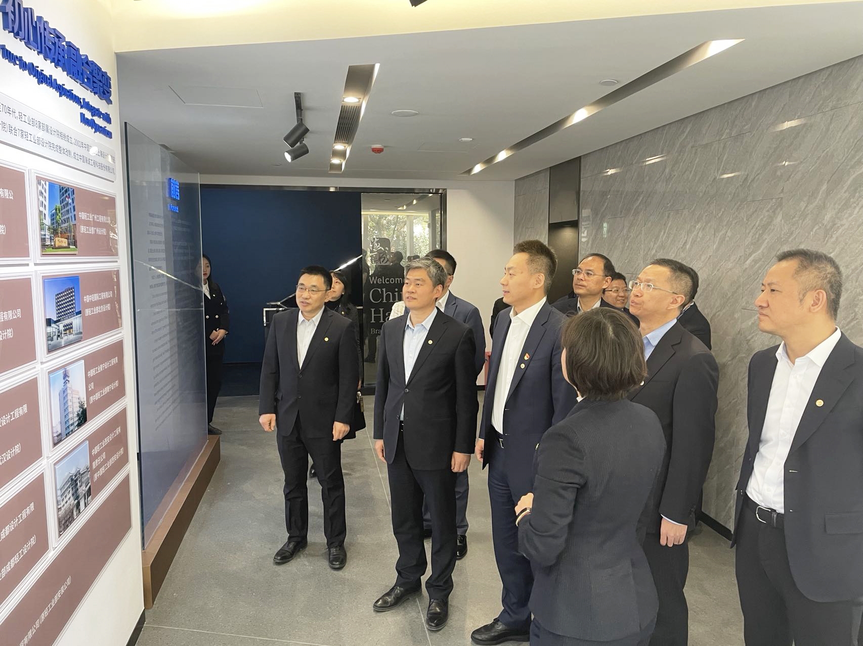 會前,張浩一行參觀了建設中的中國海誠品牌展示館,聽取了中國海誠歷史沿革、企業(yè)黨建、工程業(yè)績、科技創(chuàng)新、數字化轉型等方面的情況介紹,并在“智慧釀造”體驗區(qū)進行了現(xiàn)場體驗。