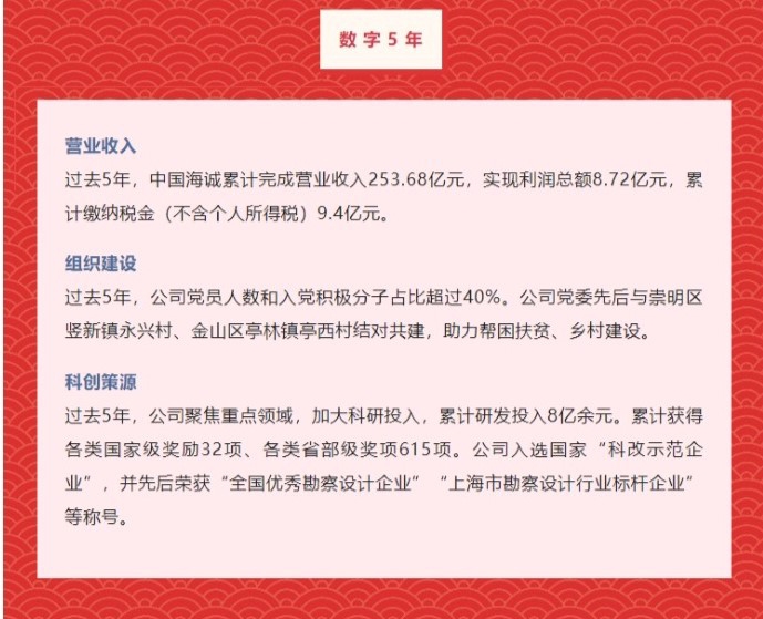截至2021年,中國(guó)海誠(chéng)擁有國(guó)家級(jí)高新技術(shù)企業(yè)9家,省級(jí)企業(yè)技術(shù)中心1家,省級(jí)工程研究中心1家;擁有有效專(zhuān)利 554 件,其中發(fā)明專(zhuān)利139件,開(kāi)發(fā)并獲得軟件著作權(quán) 48 件;主編國(guó)家行業(yè)標(biāo)準(zhǔn)規(guī)范20項(xiàng),參編國(guó)家行業(yè)規(guī)范標(biāo)準(zhǔn)21項(xiàng);參編地方標(biāo)準(zhǔn)12項(xiàng);參編團(tuán)體標(biāo)準(zhǔn)4項(xiàng),充分發(fā)揮行業(yè)引領(lǐng)作用;累計(jì)斬獲各類(lèi)優(yōu)秀工程項(xiàng)目獎(jiǎng)、科技技術(shù)獎(jiǎng)2766項(xiàng),其中國(guó)家級(jí)獎(jiǎng)項(xiàng)191項(xiàng)。2021年斬獲數(shù)字化BIM技術(shù)應(yīng)用獎(jiǎng)9項(xiàng)。日前,中國(guó)海誠(chéng)還入選國(guó)家“科改示范企業(yè)”。