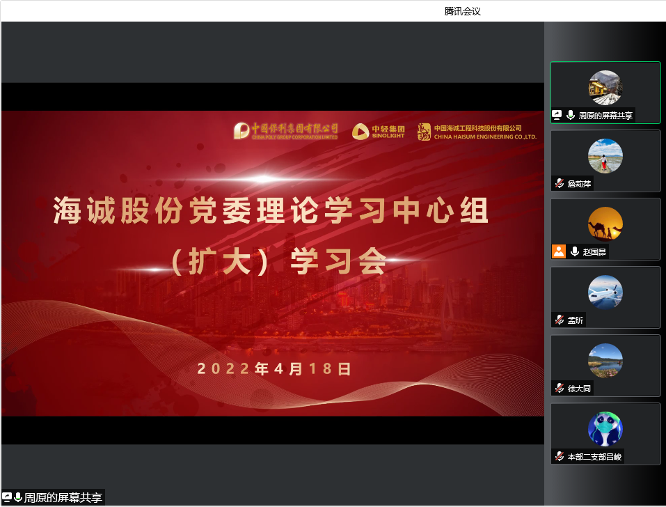 2022年4月18日下午,海誠(chéng)股份黨委以視頻會(huì)議形式,召開2022年度第一次理論中心組(擴(kuò)大)學(xué)習(xí)會(huì)。會(huì)議主題是“科技引領(lǐng)、創(chuàng)新賦能”。會(huì)議由公司黨委書記、董事長(zhǎng)趙國(guó)昂主持,公司領(lǐng)導(dǎo)班子成員、總部職能部門負(fù)責(zé)人、各直屬黨支部書記、技術(shù)研發(fā)中心員工等31人參加了學(xué)習(xí)。