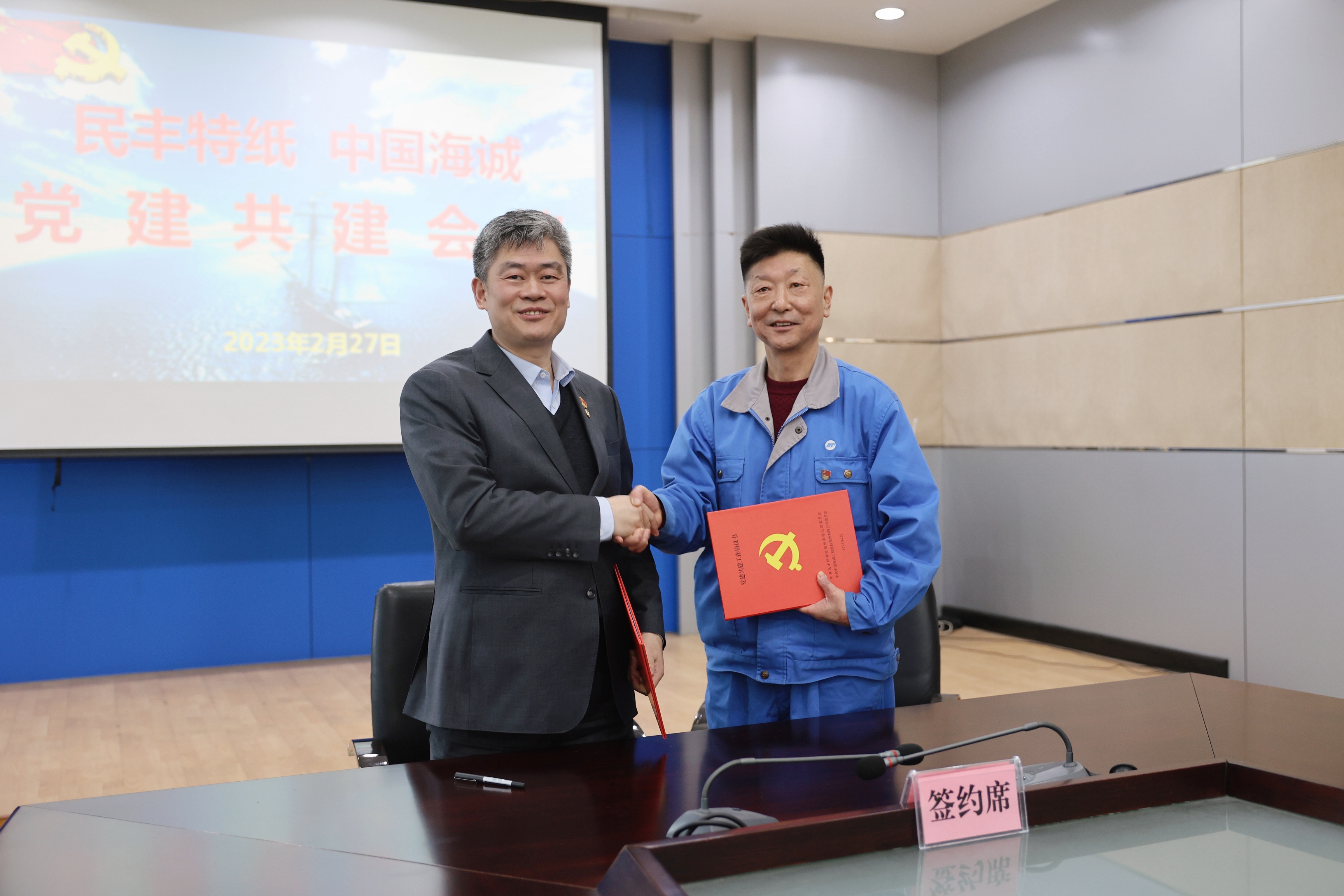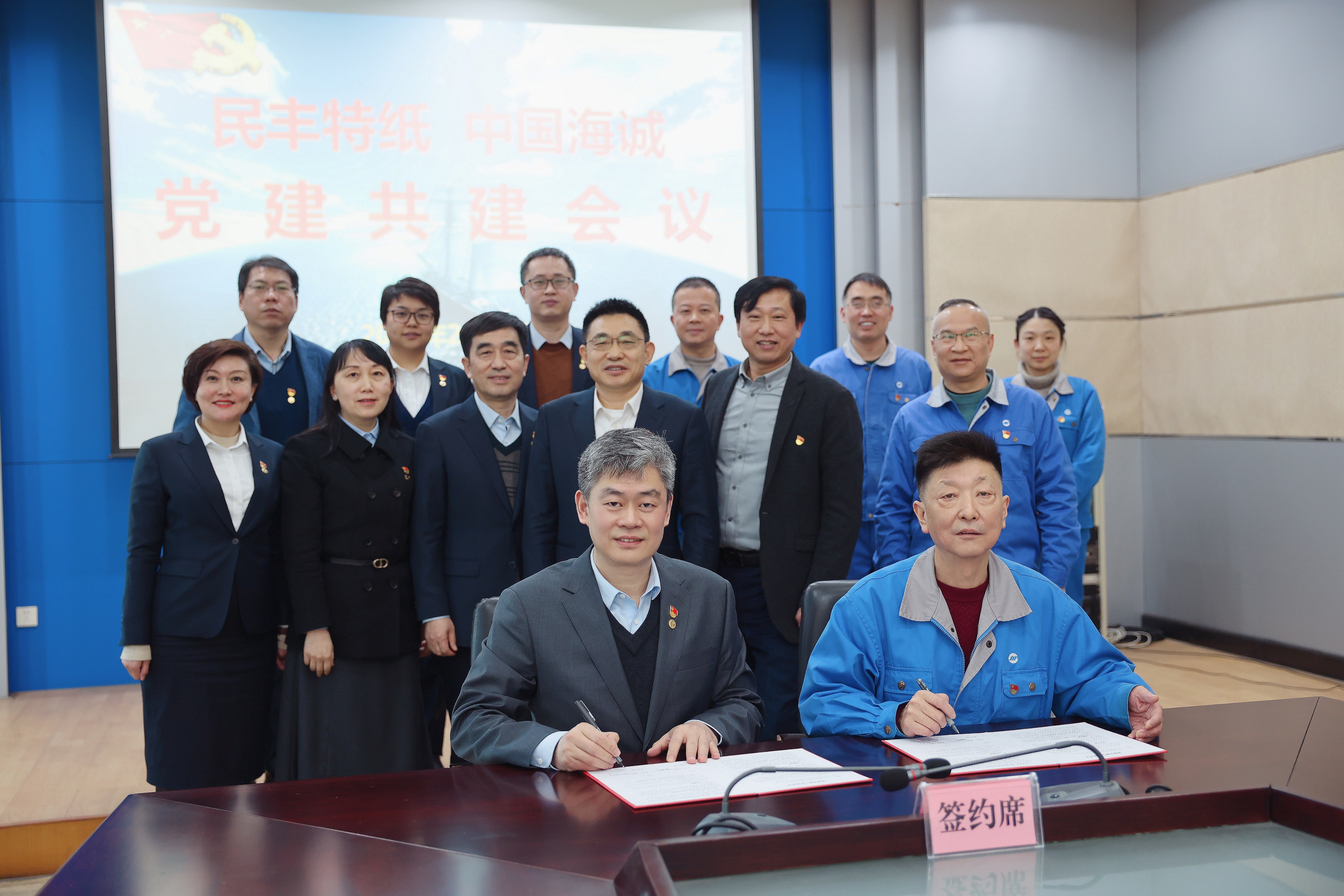 為深入貫徹黨的二十大精神,落實(shí)新時(shí)代黨的建設(shè)總要求,通過(guò)“黨建引領(lǐng)、共建聚力”促進(jìn)黨建與業(yè)務(wù)深度融合,2023年2月27日,中國(guó)海誠(chéng)黨委與民豐特紙黨委簽署黨建共建協(xié)議。民豐特紙黨委書(shū)記、董事長(zhǎng)、總經(jīng)理曹繼華,黨委副書(shū)記、副總經(jīng)理陶偉強(qiáng),黨委委員、副總經(jīng)理周家俊,黨委委員、紀(jì)委書(shū)記王洪祥;保利中輕副總經(jīng)理、中國(guó)海誠(chéng)黨委書(shū)記、董事長(zhǎng)趙國(guó)昂,黨委副書(shū)記、總裁陳榮榮,黨委副書(shū)記、紀(jì)委書(shū)記李義民出席簽約儀式。