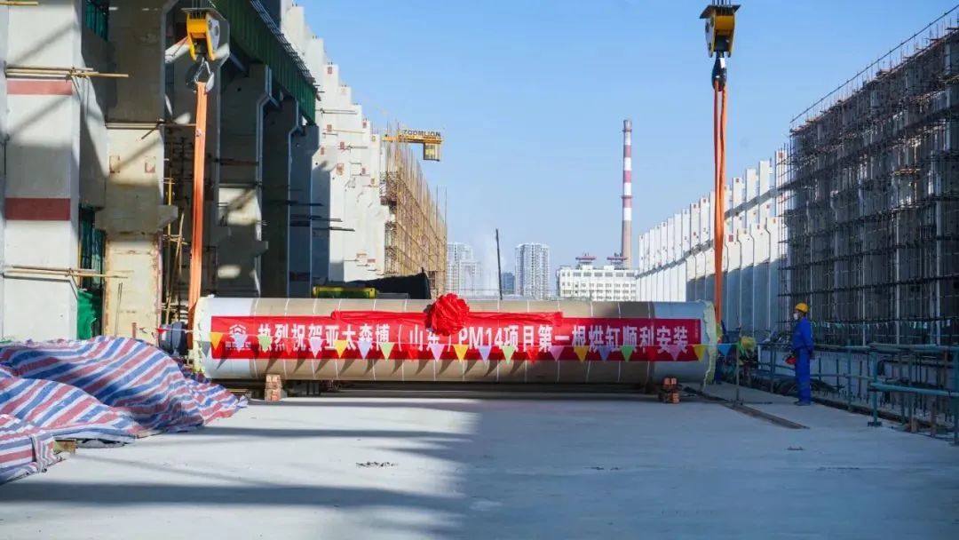 ·亞太森博年產(chǎn)50萬噸高檔文化紙PM14項(xiàng)目首臺(tái)烘缸成功安裝