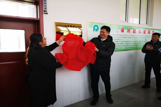 隨后,慰問(wèn)組來(lái)到王爺府鎮(zhèn)蒙古族學(xué)校,參加保利集團(tuán)·中輕集團(tuán)“保利愛(ài)心圖書(shū)館”揭牌儀式。中輕集團(tuán)總經(jīng)理助理、黨委辦公室主任肖金龍代表集團(tuán)公司為圖書(shū)館揭牌,并捐贈(zèng)價(jià)值1萬(wàn)元的閱覽桌椅和4000冊(cè)愛(ài)心圖書(shū)。