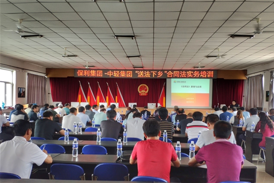 為積極踐行央企社會(huì)責(zé)任,大力弘揚(yáng)法治精神,用法治助力脫貧攻堅(jiān),7月10日上午,中輕集團(tuán)在定點(diǎn)扶貧縣內(nèi)蒙古赤峰市喀喇沁旗王爺府鎮(zhèn)舉辦“送法下鄉(xiāng)”合同法實(shí)務(wù)培訓(xùn)。中輕集團(tuán)法律事務(wù)部全員到場(chǎng)開展培訓(xùn)。王爺府鎮(zhèn)鎮(zhèn)長(zhǎng)耿利軍主持培訓(xùn),鎮(zhèn)黨政班子成員和機(jī)關(guān)干部,所屬24個(gè)村的第一書記、黨組織書記、相關(guān)工作人員等80余名村鎮(zhèn)干部參加培訓(xùn)。