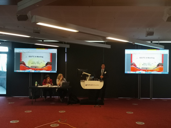 在SO/TC6全體會(huì)議上,造紙?jiān)豪璧姆亲鳛?“竹和藤技術(shù)委員會(huì)(TC/296)”的聯(lián)絡(luò)員,匯報(bào)了近一年來(lái)TC/296的標(biāo)準(zhǔn)項(xiàng)目動(dòng)態(tài);造紙?jiān)簠涡l(wèi)軍代表中國(guó)向各國(guó)專(zhuān)家發(fā)出邀請(qǐng),歡迎大家參加2021年由中國(guó)主辦造紙?jiān)撼修k的ISO/TC6全體年會(huì)。
