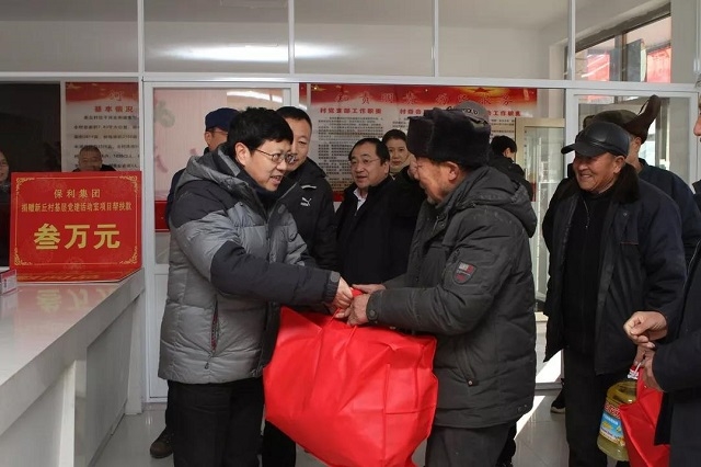 “感謝保利集團和中輕集團對我們的關懷和捐贈!”在喀喇沁旗河北街道辦事處進行的“愛在喀喇沁 扶貧送溫暖”2020年春節(jié)捐贈儀式上,當新丘村支部書記王有良、村長郭瑞東分別從王珂靈、陳曉麗手中接過黨員活動室建設幫扶款、春節(jié)慰問物資的時候,他們發(fā)自肺腑地表示感謝,并向保利集團贈送了寫著“深入基層,精準扶貧,情系百姓,溫暖人心”的錦旗。三萬元的黨員活動室建設經(jīng)費,可以讓村里的黨員能夠擁有一個更好的學習活動場所;捐贈給全村70歲以上老人和所有貧困戶的糧、油、棉被等生活用品,則能夠切實改善他們的生活。