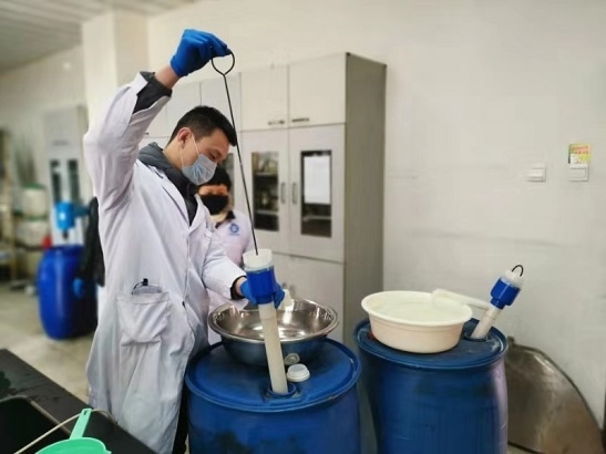 檢驗(yàn)中心工作人員在檢測樣品