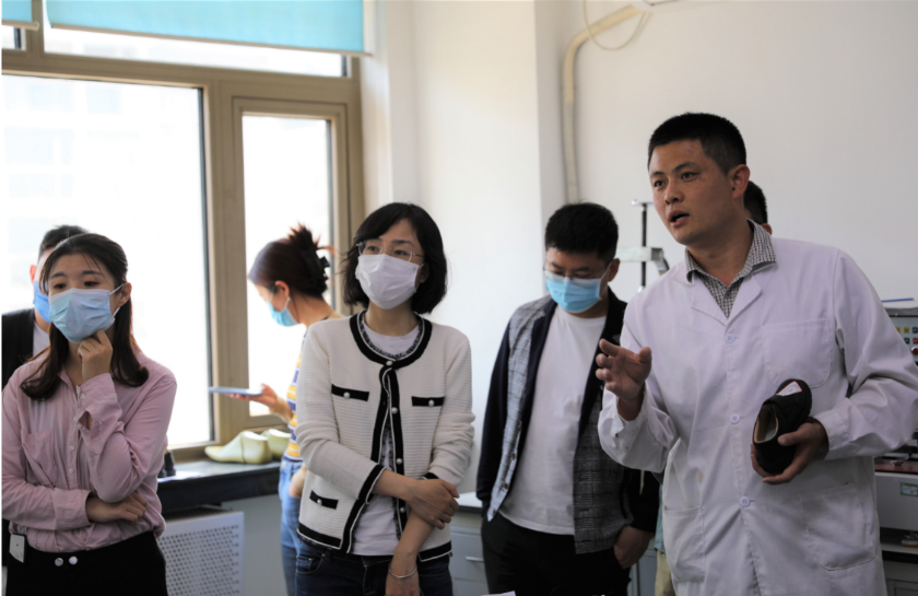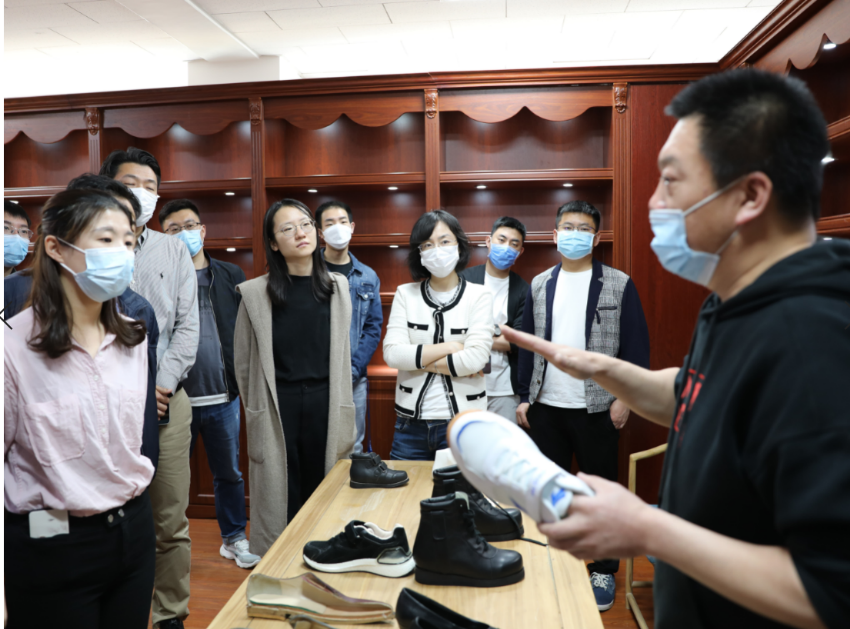隨后,大家在陳鐳書記的陪同下,由中國皮革制鞋院團支部書記王家軼帶領(lǐng)參觀了實驗室。“皮革材質(zhì)鑒定室”、“鞋類物理檢測室”和“腳型鞋楦展廳”引起了大家濃厚興趣。最后,大家在 “優(yōu)品小店”駐足,聽取中國皮革制鞋院在試點品牌終端服務的有益探索。