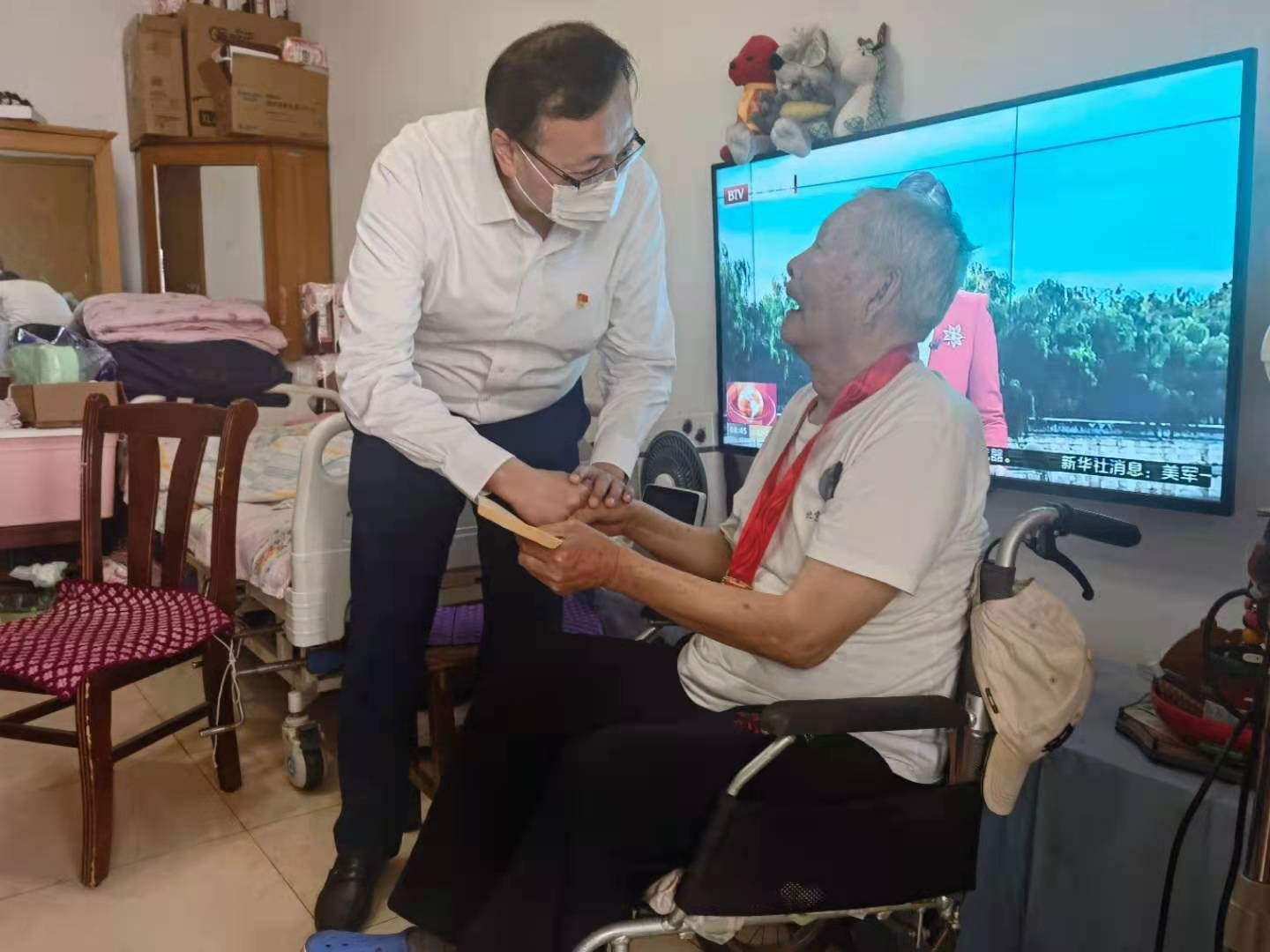 6月30日上午,劉軍才、曹文素、崔久衡一行前往72年黨齡的梁清枝老先生家中慰問,詳細(xì)詢問了梁老的身體情況和生活狀況,叮囑梁老要保重身體,并祝福梁老身體健康、生活幸福。