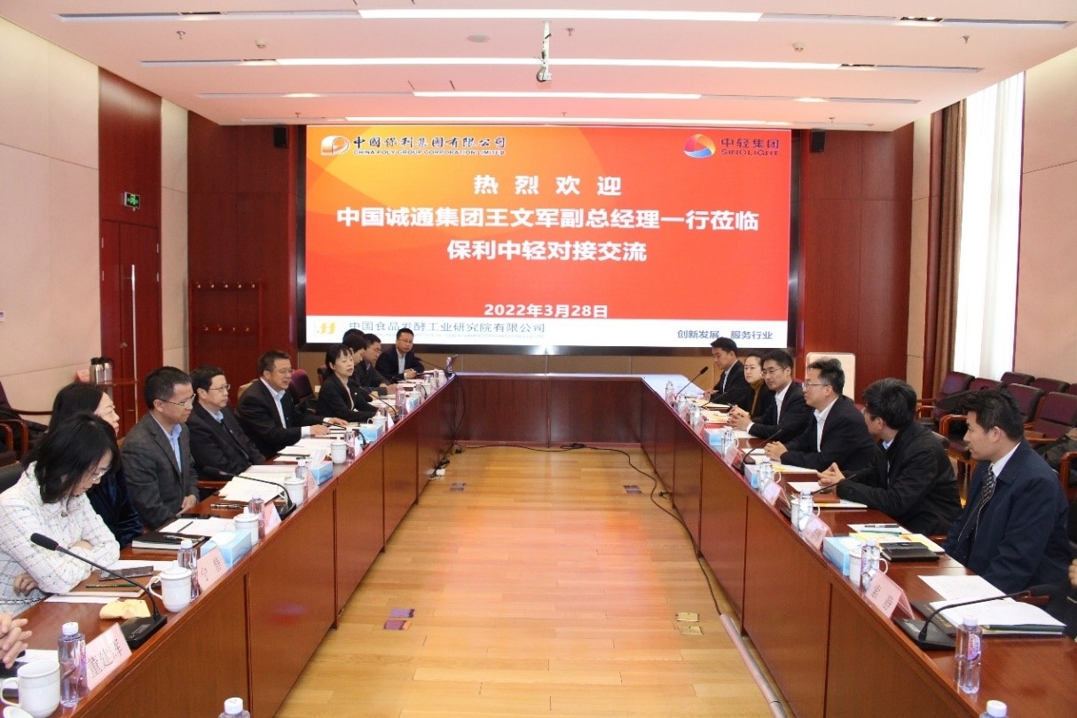 3月28日下午,保利中輕黨委副書(shū)記、董事、總經(jīng)理王珂靈在中國(guó)食品發(fā)酵工業(yè)研究院會(huì)見(jiàn)中國(guó)誠(chéng)通控股集團(tuán)有限公司副總經(jīng)理王文軍一行,雙方就加強(qiáng)科技服務(wù)、工程全過(guò)程服務(wù)、股權(quán)處置和資本運(yùn)作等方面合作進(jìn)行了深入交流。