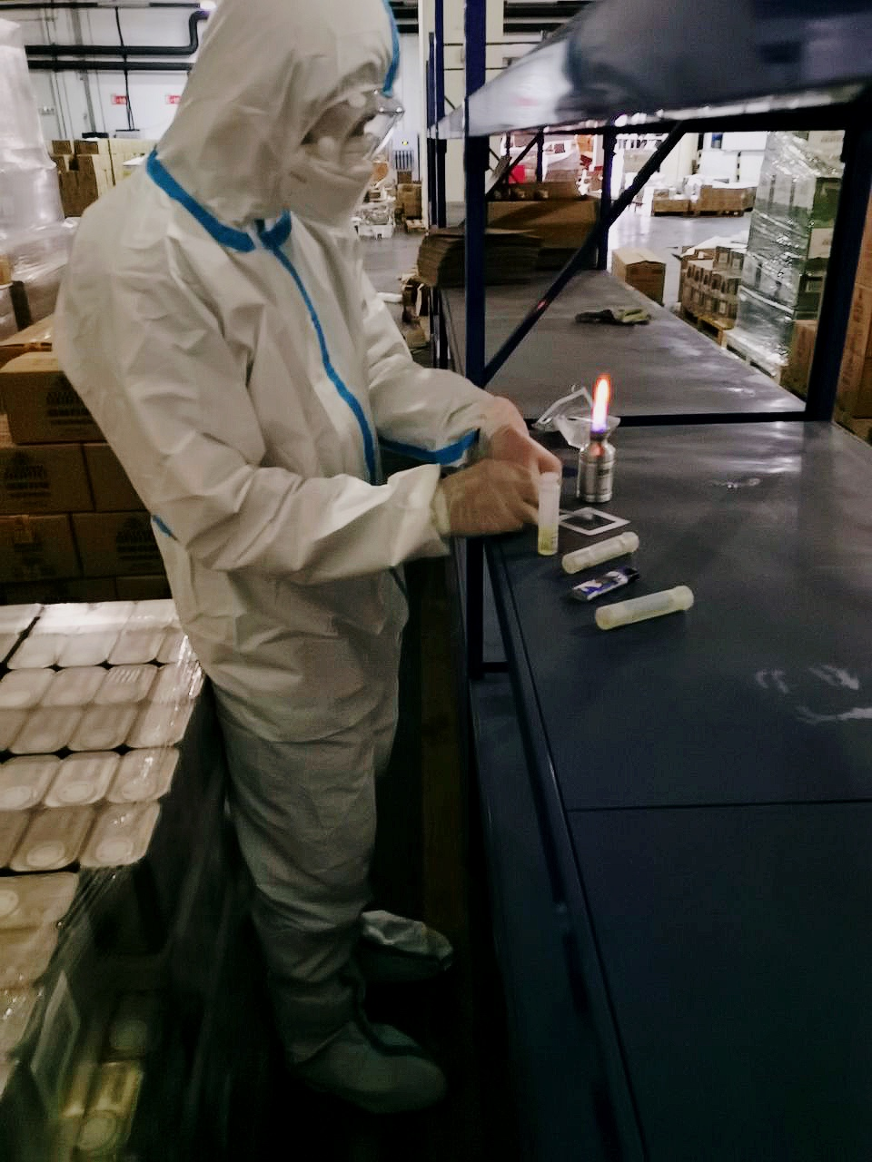與此同時(shí),中輕檢驗(yàn)普研標(biāo)準(zhǔn)想客戶所想,急客戶所急,疫情期間全力推出全方位消殺服務(wù)。5月26日,為保證某食品企業(yè)產(chǎn)品順利出貨,中輕檢驗(yàn)普研標(biāo)準(zhǔn)為其提供專業(yè)的現(xiàn)場(chǎng)消殺服務(wù)。