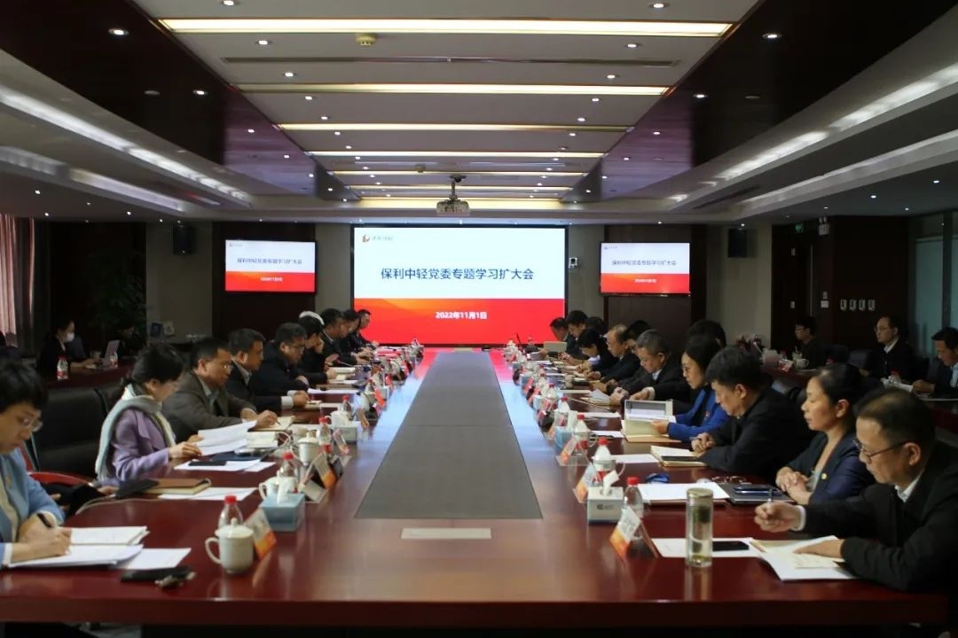 在全面學(xué)習(xí)貫徹黨的二十大精神之際,全面啟動(dòng)部署明年全面預(yù)算工作之時(shí),保利中輕黨委按照保利集團(tuán)黨委要求原原本本學(xué)習(xí)的同時(shí),11月1日下午組織召開黨委專題學(xué)習(xí)擴(kuò)大會(huì),緊緊圍繞“深入學(xué)習(xí)貫徹黨的二十大精神,落實(shí)‘八維精益’理念,推進(jìn)高質(zhì)量發(fā)展”主題,結(jié)合企業(yè)實(shí)際進(jìn)行集中學(xué)習(xí)研討。保利中輕黨委書記、董事長(zhǎng)安勝杰主持會(huì)議并總結(jié)講話。保利中輕領(lǐng)導(dǎo)班子成員、總經(jīng)理助理、總部各部門負(fù)責(zé)人,二級(jí)子公司黨政主要負(fù)責(zé)人分別以現(xiàn)場(chǎng)和視頻形式參會(huì)。