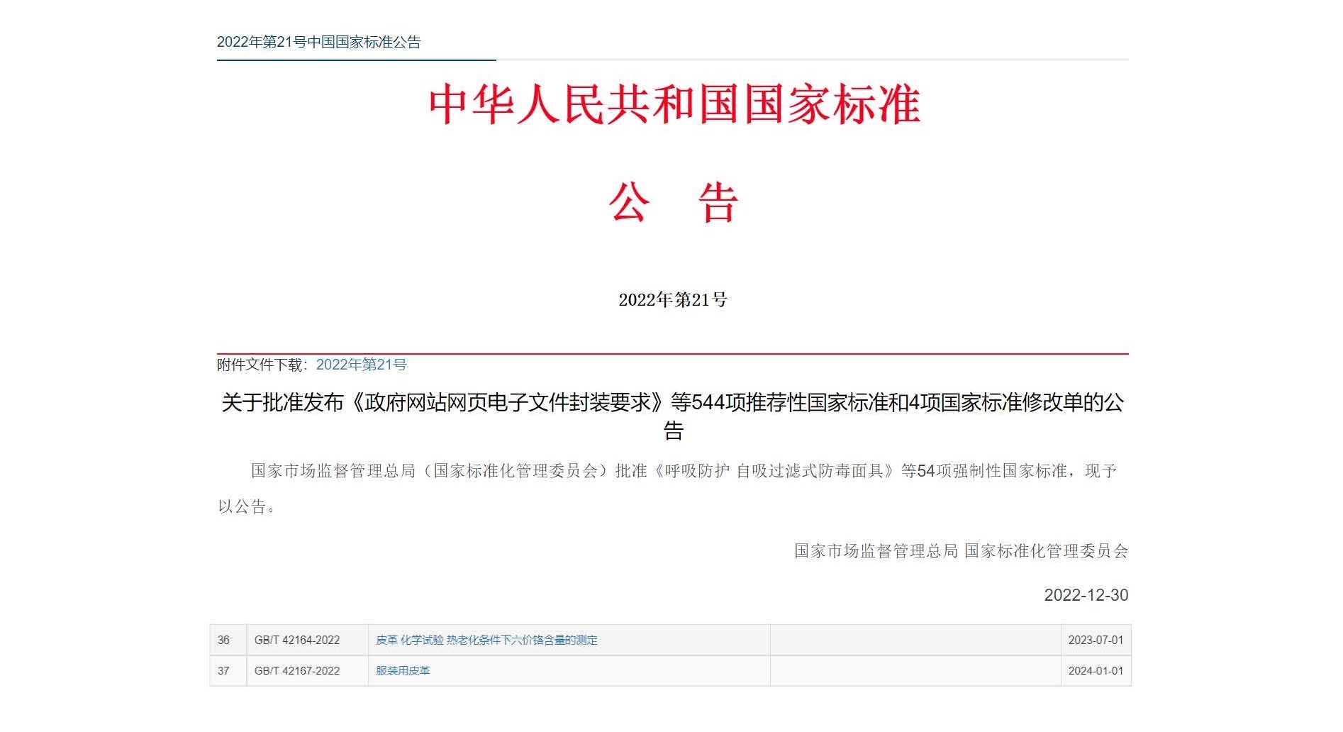中國(guó)皮革制鞋研究院、中輕檢驗(yàn)主導(dǎo)制修訂的國(guó)家標(biāo)準(zhǔn)發(fā)布