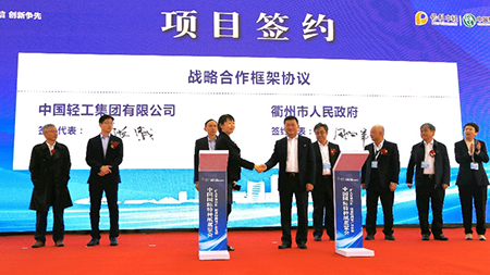 開(kāi)幕式上,安勝杰作為致辭嘉賓發(fā)表講話,張曦與衢州市委常委、常務(wù)副市長(zhǎng)周向軍簽署保利中輕-衢州市戰(zhàn)略合作協(xié)議,雙方將圍繞產(chǎn)業(yè)專項(xiàng)規(guī)劃、產(chǎn)業(yè)創(chuàng)新平臺(tái)、關(guān)鍵共性技術(shù)攻關(guān)、企業(yè)轉(zhuǎn)型升級(jí)等方面開(kāi)展全方面合作。工業(yè)和信息化部消費(fèi)品工業(yè)司二級(jí)巡視員謝立安和安勝杰、曹春昱、孫波等保利中輕領(lǐng)導(dǎo)共同見(jiàn)證簽約儀式。