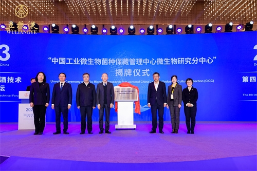 開幕式上,中國(guó)食品發(fā)酵工業(yè)研究院與宜賓五糧液股份有限公司共建的“中國(guó)工業(yè)微生物菌種保藏管理中心白酒微生物研究分中心”揭牌儀式順利舉行,保利中輕副總經(jīng)理,中國(guó)食品發(fā)酵工業(yè)研究院黨委書記、董事長(zhǎng)肖丹與宜賓五糧液股份有限公司總工程師楊韻霞共同揭牌。安勝杰與中國(guó)酒業(yè)協(xié)會(huì)理事長(zhǎng)宋書玉,農(nóng)業(yè)農(nóng)村部中國(guó)農(nóng)村技術(shù)開發(fā)中心副主任張松梅,五糧液集團(tuán)(股份)有限公司黨委書記、董事長(zhǎng)曾從欽,中國(guó)工程院院士、江南大學(xué)校長(zhǎng)陳衛(wèi)共同見證。“中國(guó)工業(yè)微生物菌種保藏管理中心白酒微生物研究分中心”是按照國(guó)家標(biāo)準(zhǔn)菌種資源庫(kù)組建的白酒行業(yè)最大的菌種保藏平臺(tái),該平臺(tái)現(xiàn)已收藏五糧液釀造微生物菌種400余種、1000余株、20000余份備份,為五糧液乃至中國(guó)白酒技術(shù)創(chuàng)新及生產(chǎn)應(yīng)用提供全面的菌種資源。
