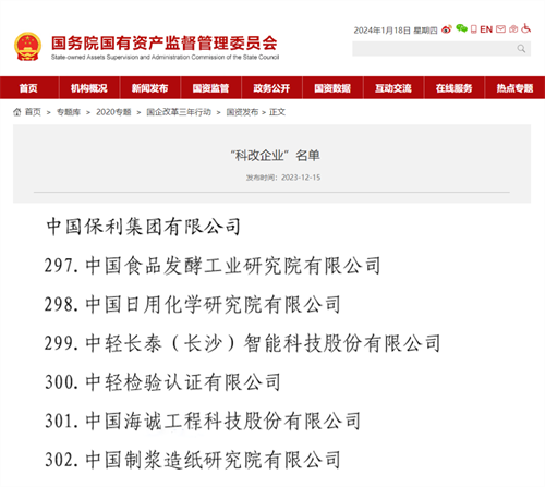 中國制漿造紙研究院新入圍國務(wù)院國資委“科改企業(yè)”名單,保利中輕科改企業(yè)增至6家。在國務(wù)院國資委年度專項考核中,中國食品發(fā)酵工業(yè)研究院、中輕檢驗被評為“標(biāo)桿企業(yè)”,中國日用化學(xué)研究院、中輕長泰被評為“優(yōu)秀企業(yè)”。