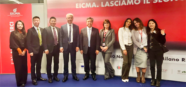展會(huì)期間,安勝杰一行分別與同期出席展會(huì)的中國駐米蘭總領(lǐng)事館經(jīng)濟(jì)商務(wù)處耿協(xié)威參贊、潘源文領(lǐng)事,浙江省衢州市田俊副市長以及EICMA組委會(huì)相關(guān)負(fù)責(zé)同志深入交流。耿協(xié)威對(duì)中國企業(yè)發(fā)展及中輕展覽的組織工作給予充分肯定,并鼓勵(lì)大家繼續(xù)發(fā)揮優(yōu)勢(shì),拓展國際市場(chǎng),提升中國兩輪車行業(yè)在全球的影響力。田俊對(duì)雙方多次合作表示贊許,并誠邀中輕展覽加強(qiáng)與在衢企業(yè)的溝通交流,共同推動(dòng)衢州產(chǎn)業(yè)發(fā)展。EICMA組委會(huì)負(fù)責(zé)人表示,中輕展覽擁有一支非常專業(yè)的業(yè)務(wù)團(tuán)隊(duì),雙方是親密無間的合作伙伴。