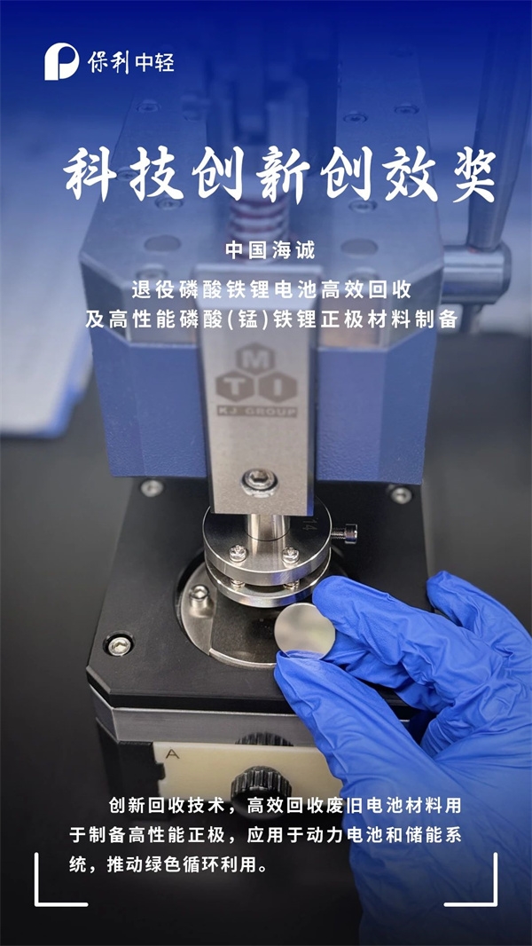 近日,保利集團(tuán)第一屆“青創(chuàng)杯”創(chuàng)新創(chuàng)效大賽結(jié)果公布。中國食品發(fā)酵工業(yè)研究院(簡(jiǎn)稱“中國食品院”)開發(fā)的“食品安全標(biāo)準(zhǔn)菌株和標(biāo)準(zhǔn)樣品產(chǎn)業(yè)化應(yīng)用”項(xiàng)目獲成果轉(zhuǎn)化創(chuàng)效獎(jiǎng),中國海誠開發(fā)的“退役磷酸鐵鋰電池高效回收及高性能磷酸(錳)鐵鋰正極材料制備”項(xiàng)目獲科技創(chuàng)新創(chuàng)效獎(jiǎng)。此次獲獎(jiǎng)再次彰顯保利中輕在科技創(chuàng)新工作方面的顯著成效。快來圍觀,一起為他們打call!