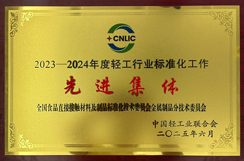 中國食品發(fā)酵工業(yè)研究院承擔(dān)秘書處單位的全國食品直接接觸材料及制品標(biāo)準(zhǔn)化技術(shù)委員會金屬制品分技術(shù)委員會獲得023—2024年度輕工行業(yè)標(biāo)準(zhǔn)化工作先進(jìn)集體”榮譽(yù)稱號。