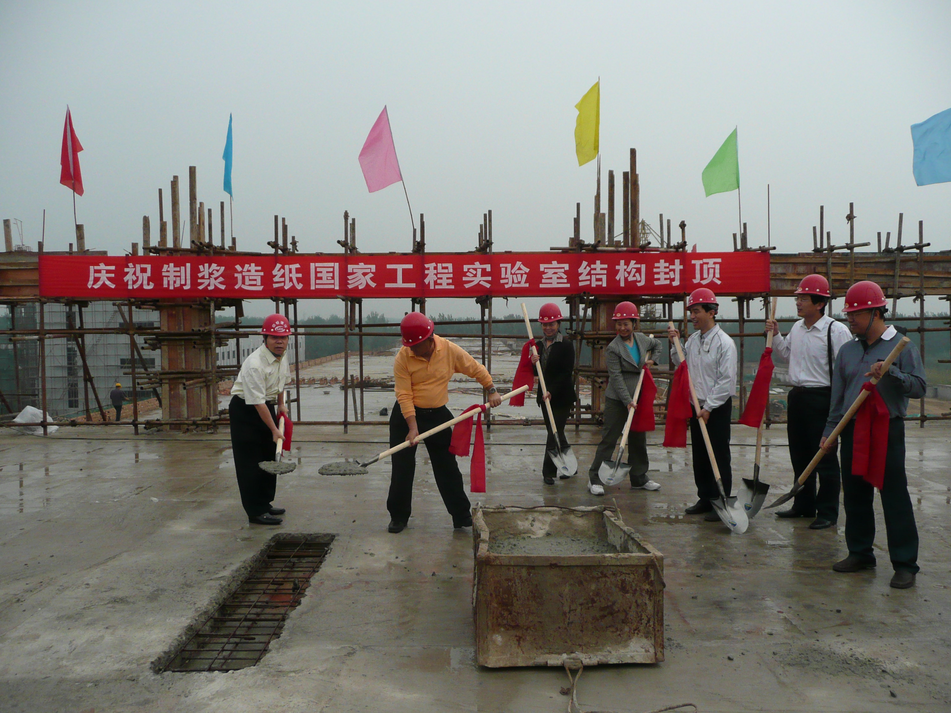 9月26日,中國制漿造紙研究院制漿造紙國家工程實(shí)驗(yàn)室項(xiàng)目主體結(jié)構(gòu)封頂儀式在河北省廊坊市舉行,陳鄂生總經(jīng)理、曹振雷副總經(jīng)理出席了該儀式。