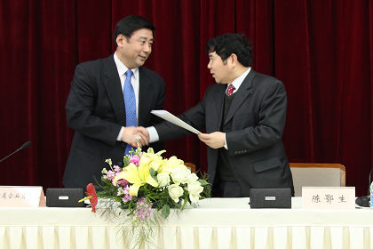 陳鄂生總經(jīng)理與日化院院長王萬緒簽訂經(jīng)營目標責任書