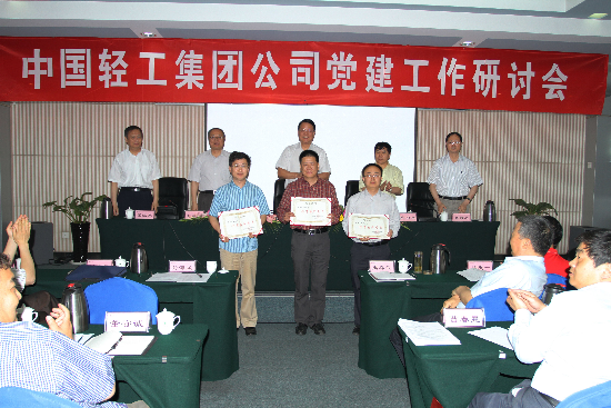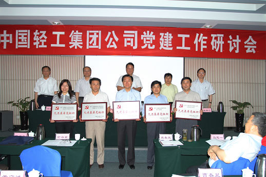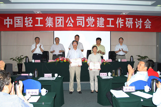 5月27--28日,中國輕工集團公司召開了黨建工作研討會,會議深入貫徹落實黨的十七大、十七屆四中全會和全國國有企業(yè)黨建工作會議精神,深入貫徹落實科學(xué)發(fā)展觀,總結(jié)集團公司重組以來黨建工作情況,研究探討加強和改進集團公司黨建工作的意見和措施,安排部署當前和今后一個時期黨建工作,表彰集團公司先進基層黨組織、優(yōu)秀共產(chǎn)黨員和優(yōu)秀黨務(wù)工作者。集團公司黨委書記、董事長陳學(xué)忠、總經(jīng)理陳鄂生、黨委副書記趙海建、副董事長張靜之、黨委副書記、紀委書記梁江東出席會議并在主席臺就座,集團公司在家的黨政領(lǐng)導(dǎo)班子成員禹春武、俞海星、馬思一、任建平、閻寶成、郭建全、童云翔,集團公司各所屬企業(yè)黨政負責同志及黨辦主任共計50余人出席了會議。