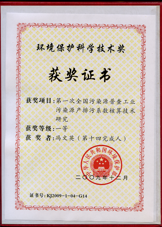 中國(guó)制漿造紙研究院教授級(jí)高工曹春昱和高工馮文英參與的《第一次全國(guó)污染源普查工業(yè)污染源產(chǎn)排污系數(shù)核算技術(shù)研究》項(xiàng)目獲國(guó)家環(huán)保部2009年度環(huán)境保護(hù)科學(xué)技術(shù)獎(jiǎng)一等獎(jiǎng)。