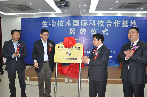 10月9日,科技部“生物技術(shù)國際科技合作基地” 揭牌儀式在集團食品發(fā)酵院隆重舉行。科技部國際合作司靳曉明司長、綜合與計劃處張健處長、集團陳鄂生董事長、食品發(fā)酵院蔡木易院長等出席了此次揭牌儀式。靳曉明司長和陳鄂生董事長共同為生物技術(shù)國際科技合作基地揭牌。