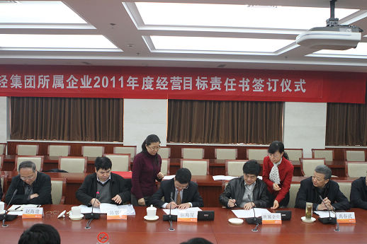 俞海星總經(jīng)理與中輕物產(chǎn)公總會計師錢小林簽訂責(zé)任書