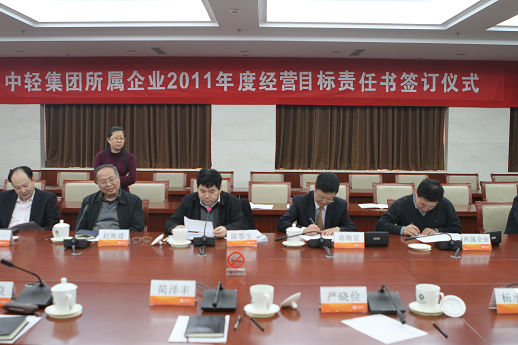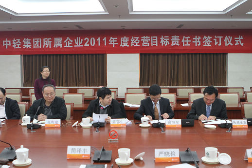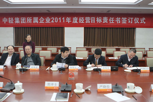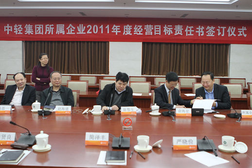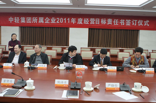 俞海星總經(jīng)理與中輕對外公司副總經(jīng)理王向陽簽訂責(zé)任書